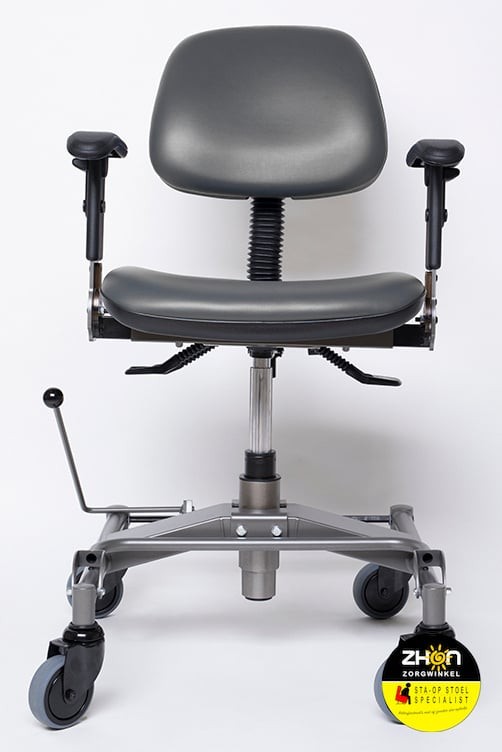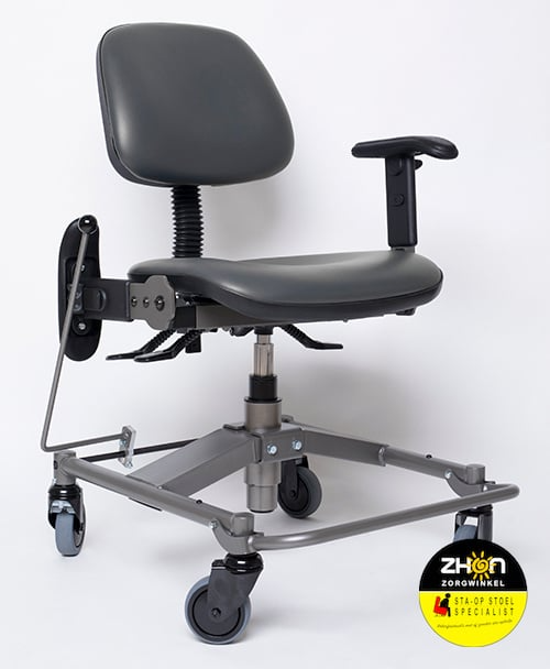 Deze trippelstoel is uitgerust zonder rotatie en een lage rug en daarmee zeer geschikt voor actieve werkdagen. De elektrische uitvoering is vooral geschikt voor gebruikers met een slechte balans of verminderde kracht in benen en/of handen.